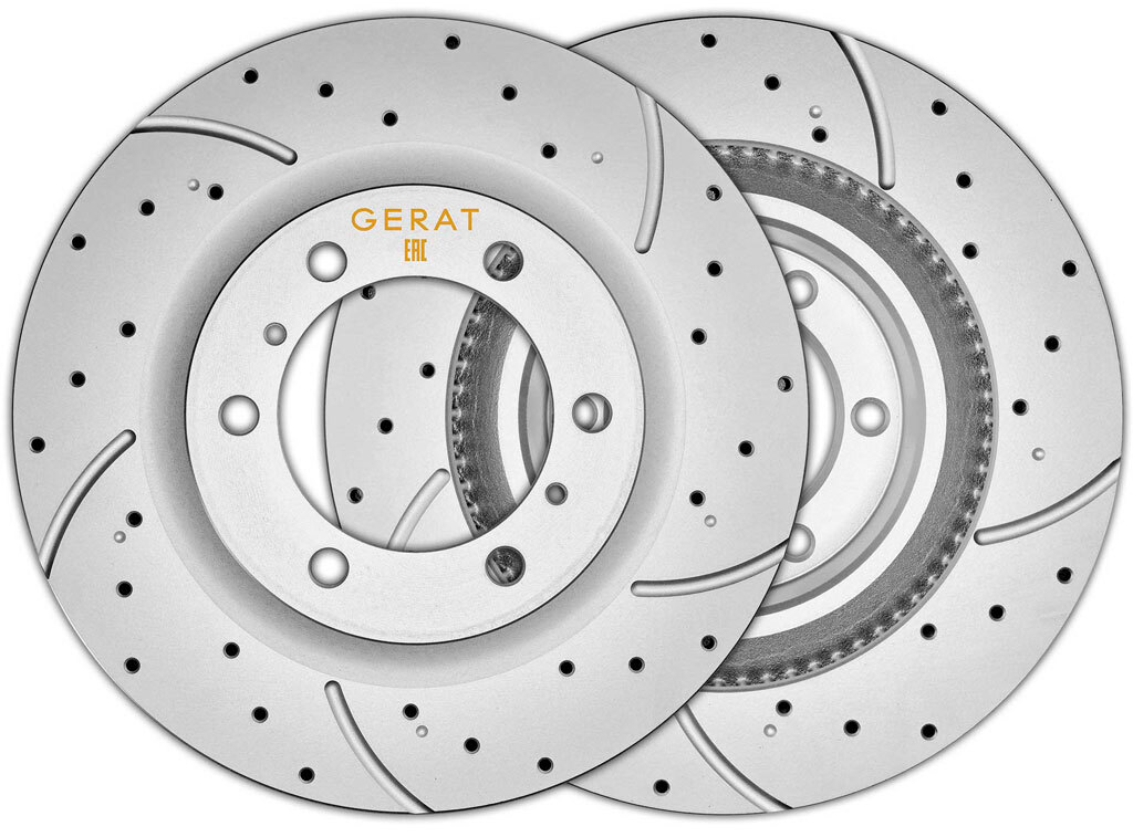 Все тормозные диски GERAT с перфорацией - это увеличивает площадь обдуваемой поверхности диска, улучшая его охлаждение, а это значит что тормоза не перегреются и не станут "мягкими" как это происходит на штатных дисках