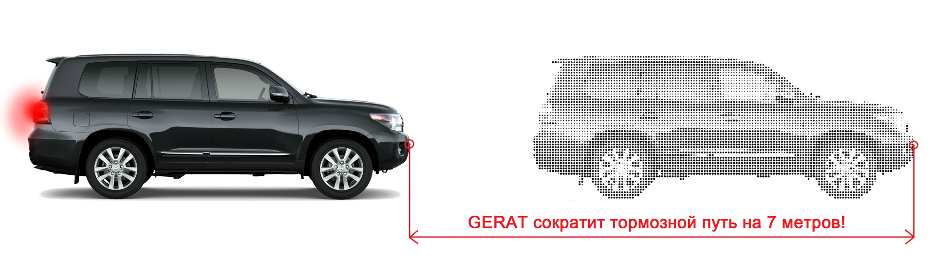 Колодки GERAT имеют на 30% больший коэффициент трения поверхности (0,32-0,42), по сравнению со штатными колодками (0,25-0,29). Это позволяет сократить тормозной путь на 7 метров.